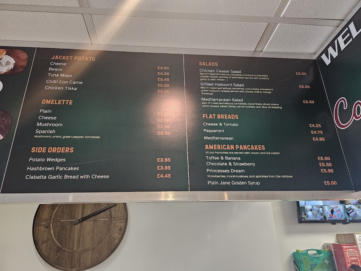 This menu structure allows visitors to quickly choose from coffee, light bites, or fuller small meals in a casual setting, with options that suit different times of day and dining preferences.