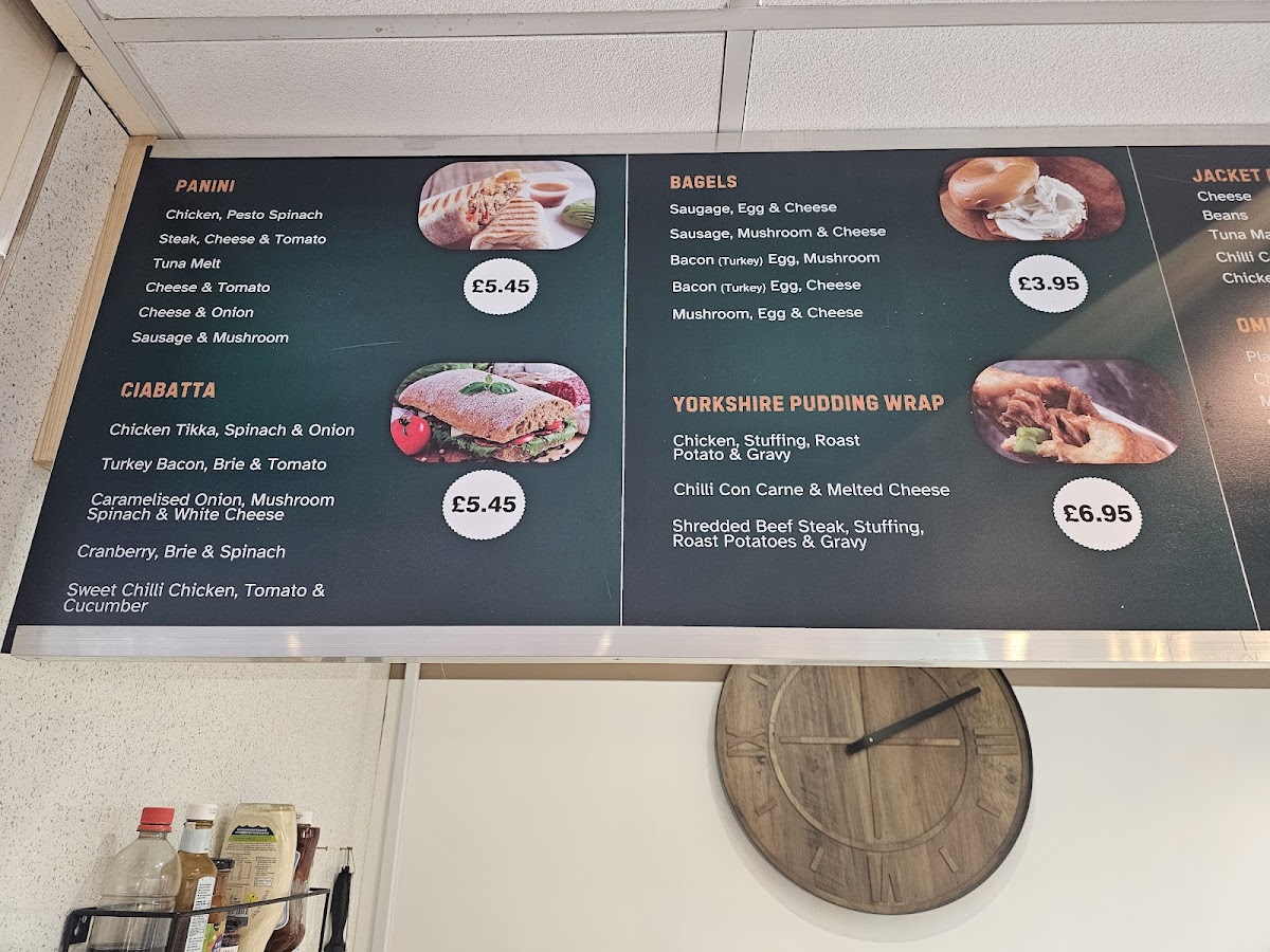- Paninis: A range of warm sandwiches including Chicken with Pesto and Spinach, Steak with Cheese & Tomato, Tuna Melt, Cheese & Tomato, Cheese & Onion, as well as Sausage & Mushroom varieties for light lunch or casual dining.